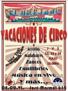— julio 13, 2018 0 282Companía de Circo «El Orejano» presenta: VACACIONES DE CIRCO EN CECUVI LA TEJA! Jueves 12, Viernes 13 y Sábado14 de Julio a partir de las 14:30hs se abren las puertas y la función comienza puntual 15:00hs.